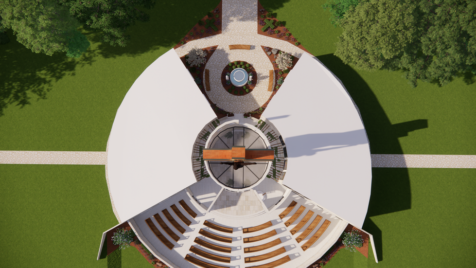 This proposed new build in central Michigan draws inspiration from the iconic Cross in the Woods Catholic shrine, reimagined as a multi-phase spiritual and cultural destination. Phase one centers on a soaring Cross, envisioned as the focal point of the entire site. Surrounding it, an outdoor nave, indoor chapel, museum, gift shop, and café will be thoughtfully arranged to create a cohesive and engaging visitor experience. The grotto from which the Cross emerges naturally orchestrates respectful circulation, guiding guests through the site’s amenities and culminating in a serene prayer garden at the rear, blending contemplative spaces with community engagement in a harmonious architectural composition.